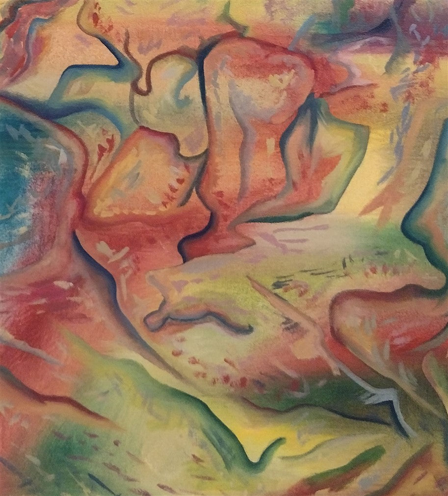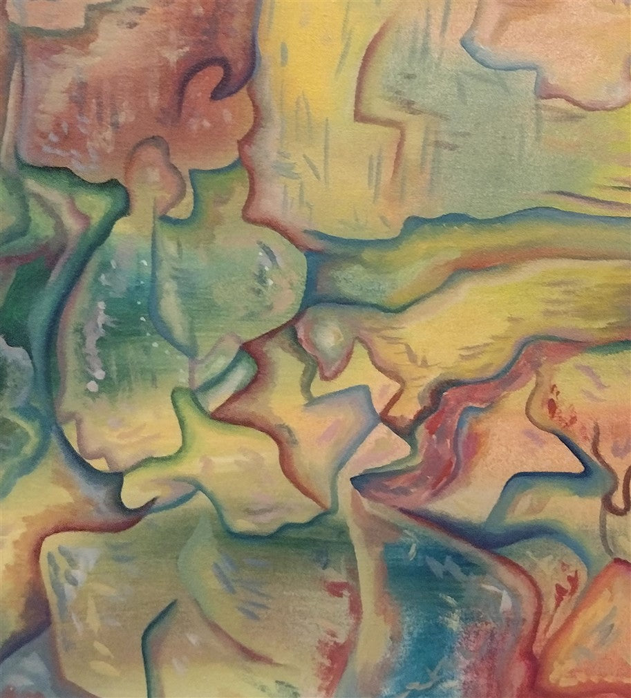 60 W x 66 H x 2 D centimeters. Oil on canvas.