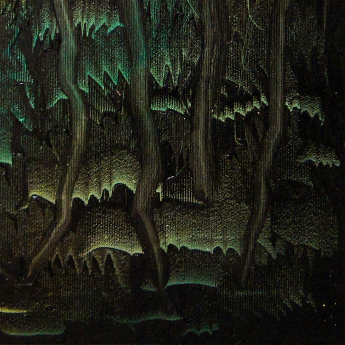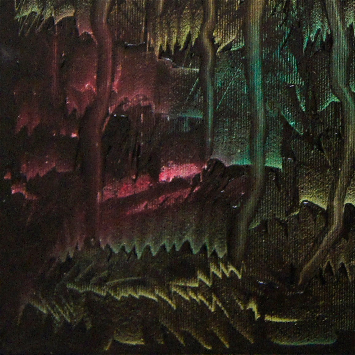 The peaks of the bloody rocks. The painting depicts a landscape that doesn't exist in our world, and is therefore entirely a figment of the imagination. A nonexistent place that, in a way, already exists.