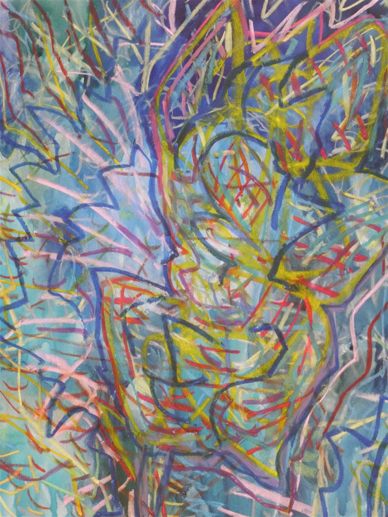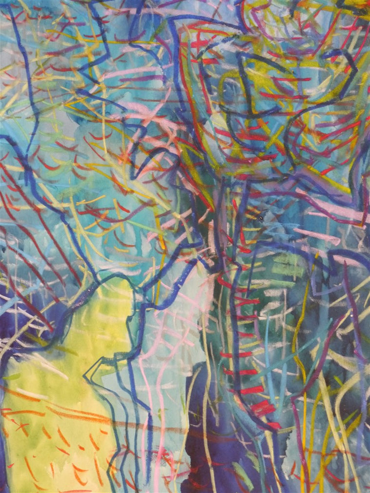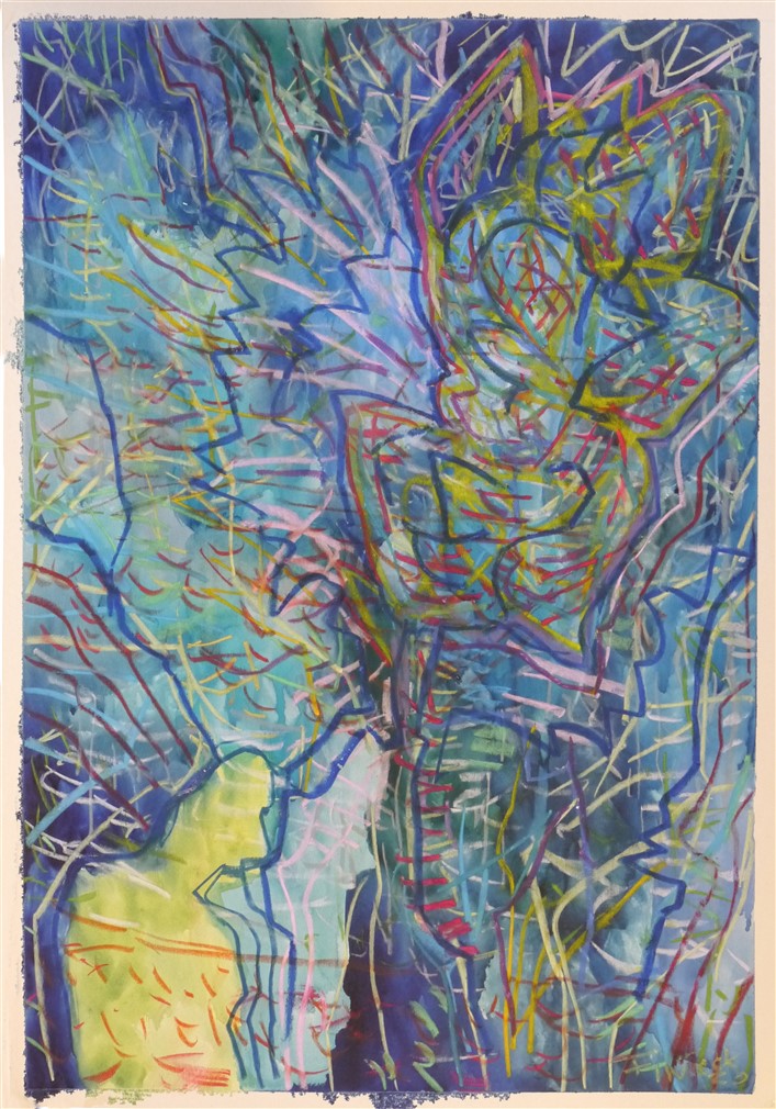 Watercolor and pastel on paper.