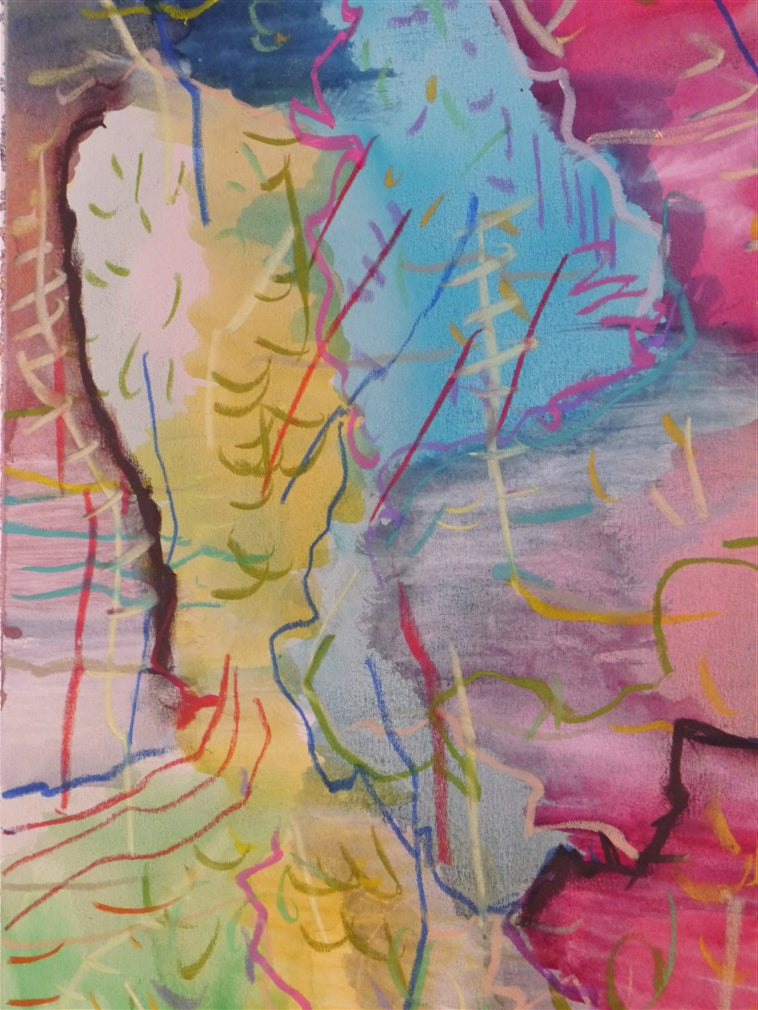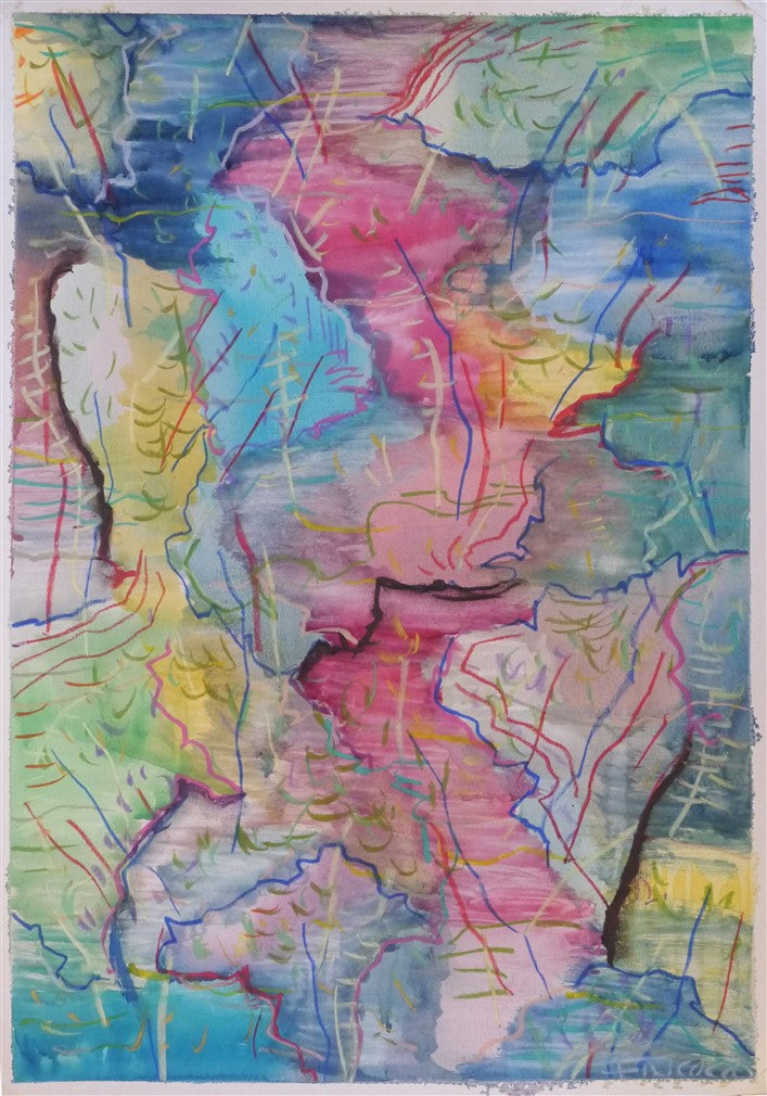 Watercolor and pastel on paper.