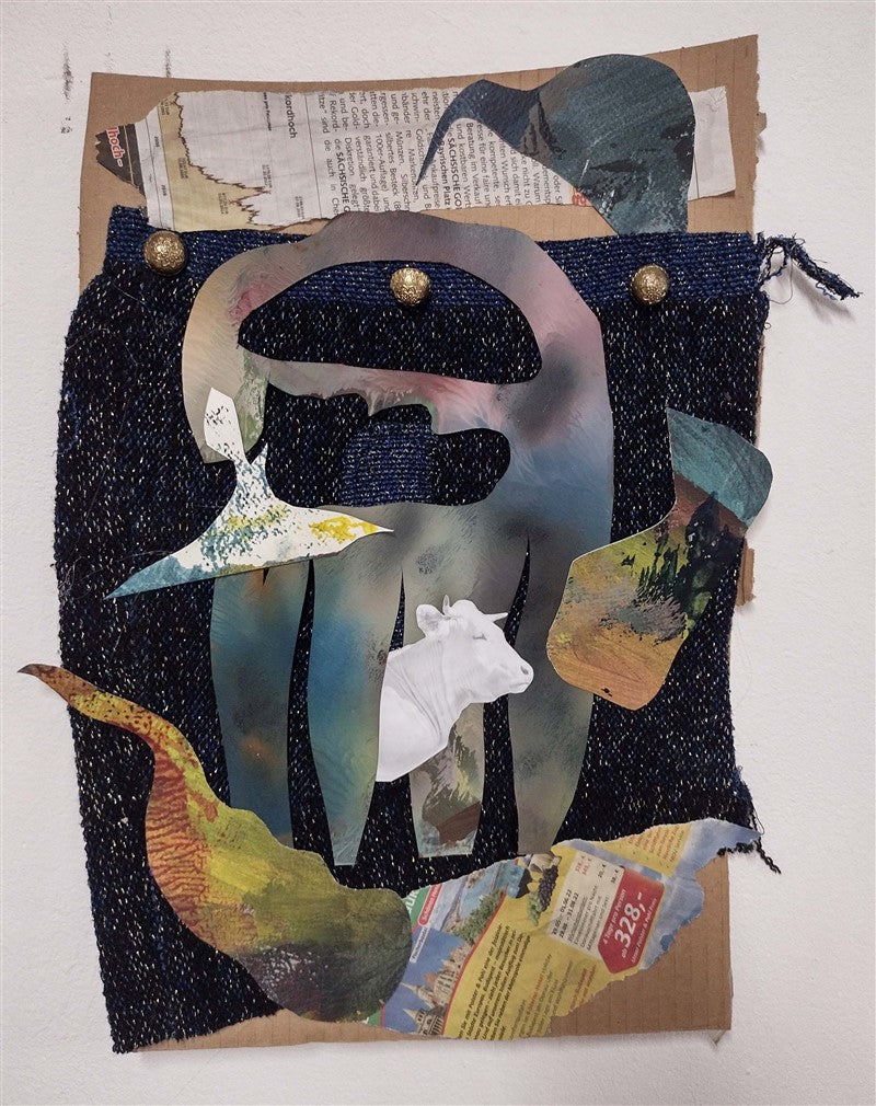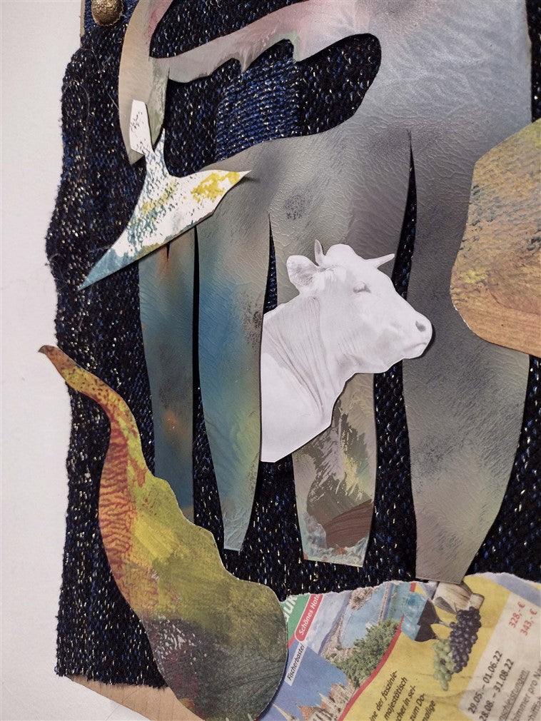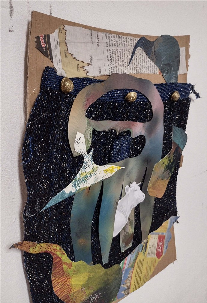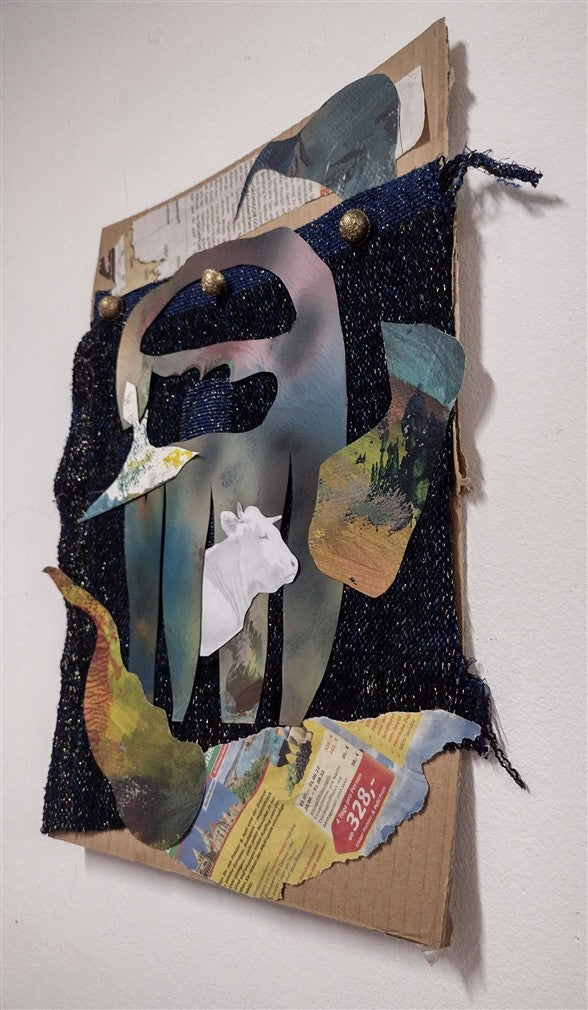 Oil on cardboard, collage.