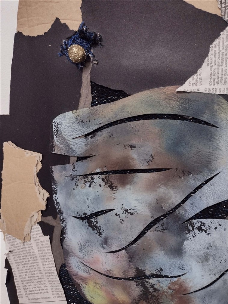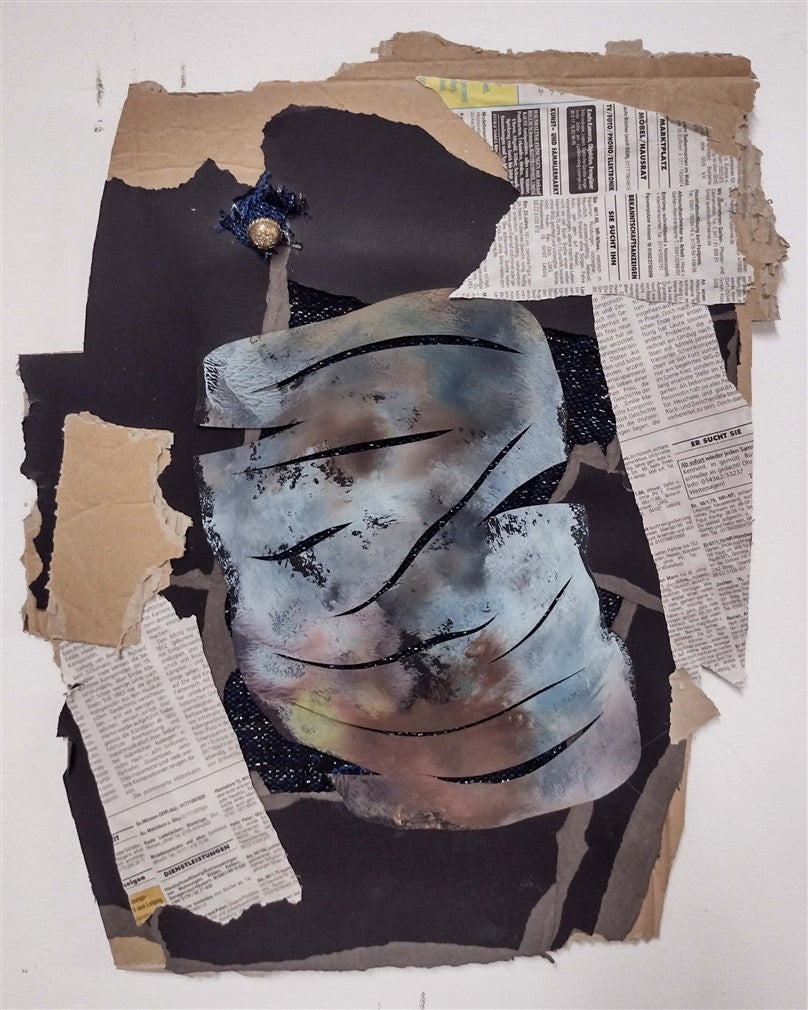 Oil on cardboard, collage.