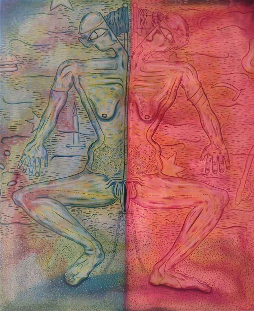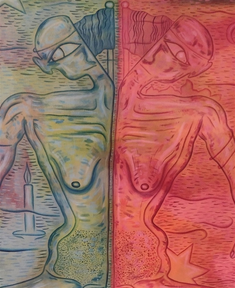 The image is inspired by a situation occurring on almost every continent, in most countries. Now and also in the past, although it seems that this trend is even stronger now. The division of societies into two parts, two hostile tribes. Is it easier to rule a group that sees the enemy in the other half and not at the top? A tactic as old as the world.