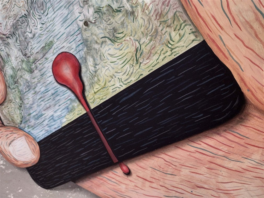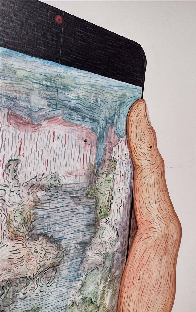 92 W x 129 H x 5 D centimeters. Oil on board.