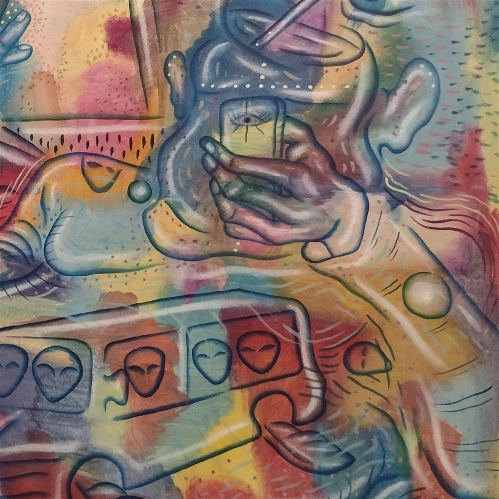 The painting shows a person from the modern generation, living in a not entirely real world. A record of the times and the state in which humanity is moving.