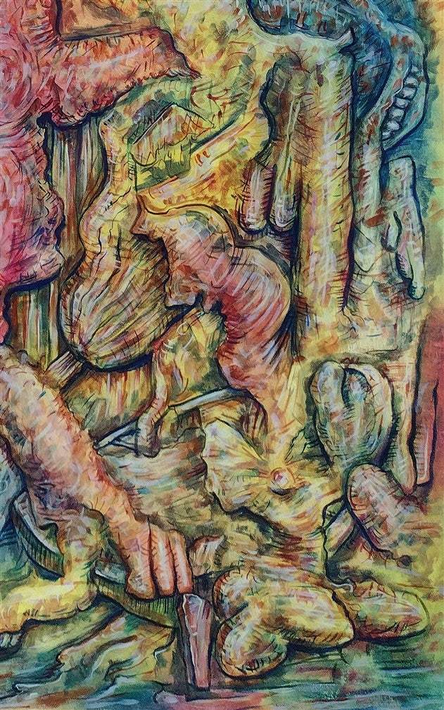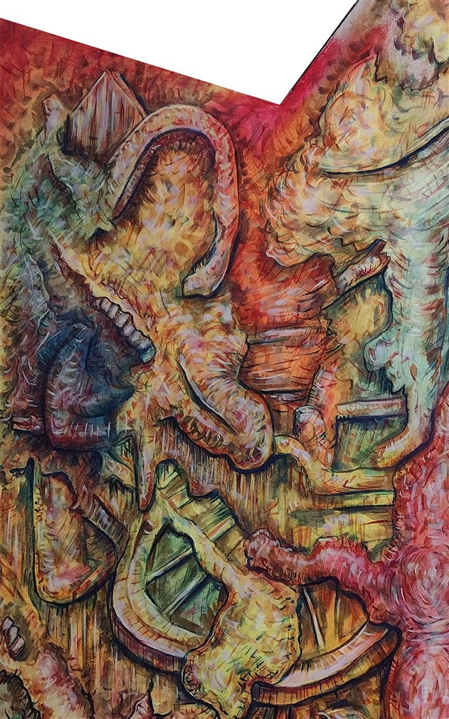 A surrealistic depiction that addresses the collective subconscious of events and the state of humanity at this moment in time and the direction we are headed as a humanity and civilization.