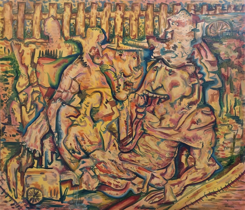 104 W x 90 H x 2 D centimeters. Oil on canvas.