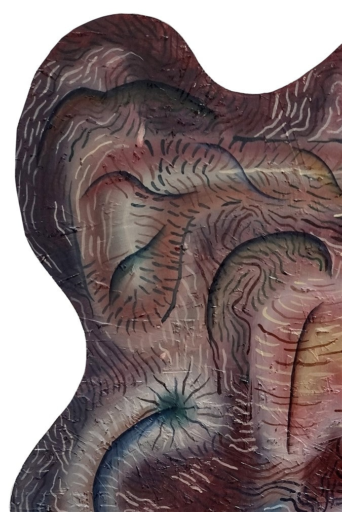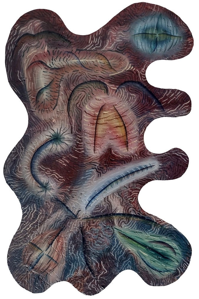 A series of oil paintings painted on cut plates with organic, biological shapes. The subject matter of the paintings refers to the world of bacteria, viruses, the whole microcosm in which life inaccessible to our eyes pulsates, fights for survival and multiplication.