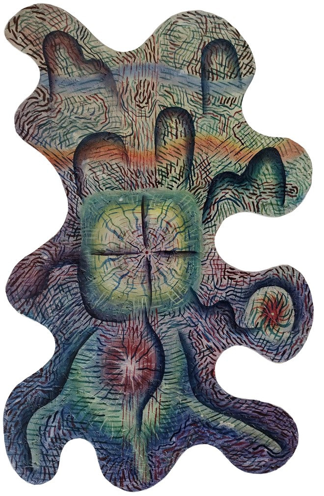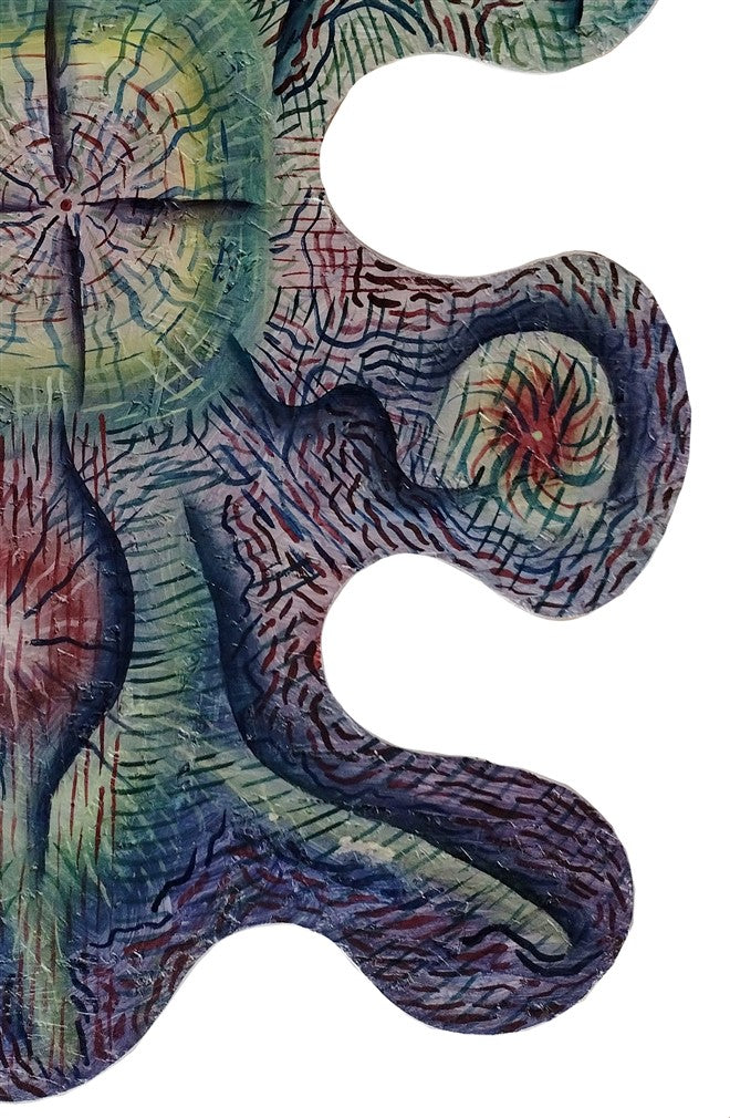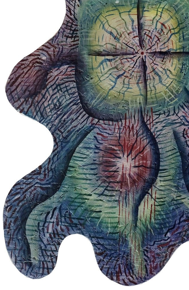 A series of oil paintings painted on cut plates with organic, biological shapes. The subject matter of the paintings refers to the world of bacteria, viruses, the whole microcosm in which life inaccessible to our eyes pulsates, fights for survival and multiplication.