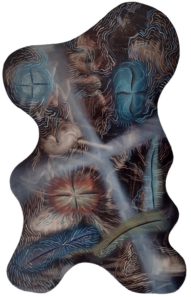 A series of oil paintings painted on cut plates with organic, biological shapes. The subject matter of the paintings refers to the world of bacteria, viruses, the whole microcosm in which life inaccessible to our eyes pulsates, fights for survival and multiplication.