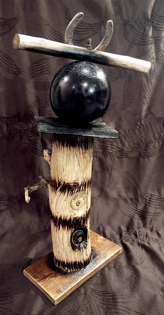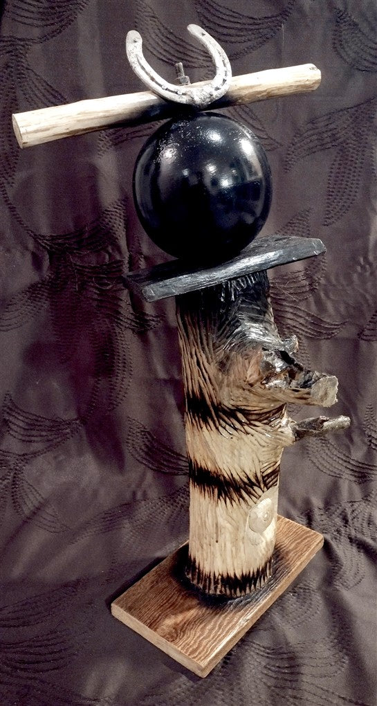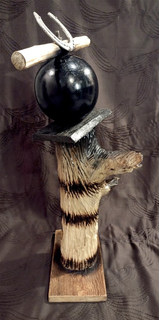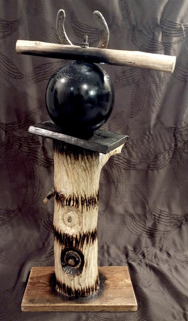 Wooden sculpture, horseshoe.